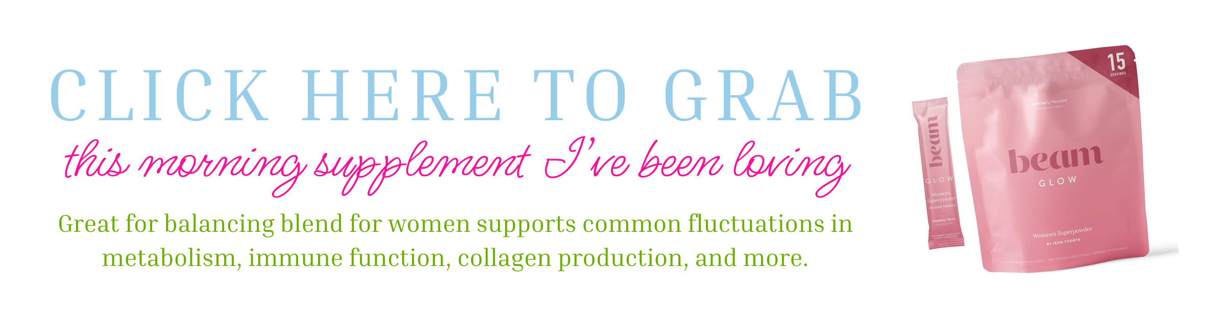 I’ve also been adding Beam Women’s Glow to my morning routine because it makes me feel AMAZING and honestly, is one of the best tasting supplements I’ve ever had!